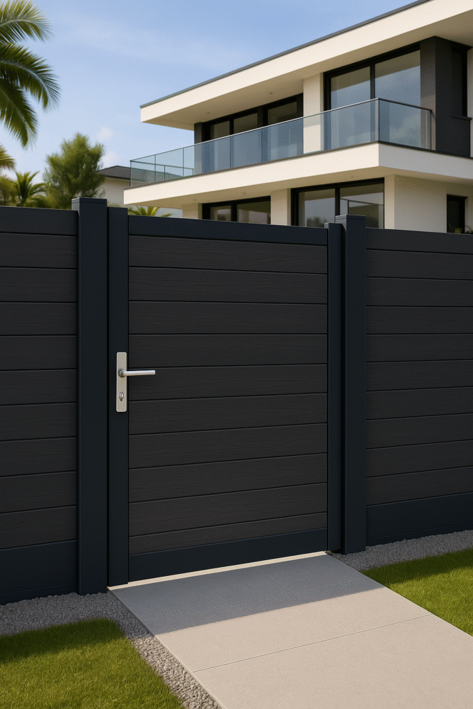 Découvrez l’élégance et la robustesse de notre portillon en lamelles composite avec structure en aluminium. Un design moderne, sans entretien, qui s’intègre parfaitement à votre clôture pour une entrée à la fois stylée et sécurisée. Idéal pour sublimer votre extérieur avec sobriété et durabilité.